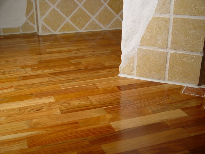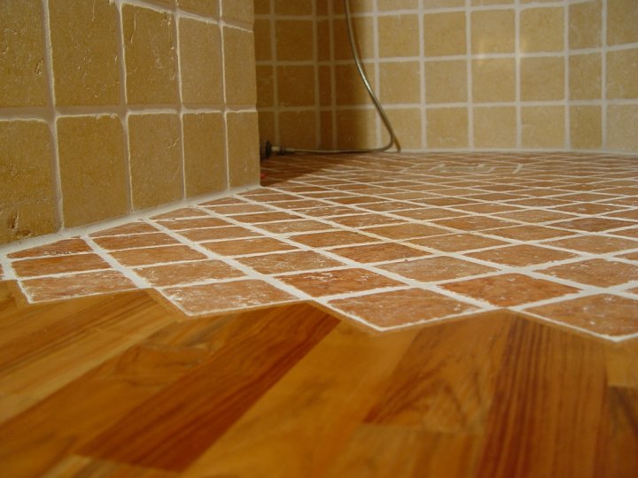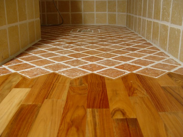 In "Mischtechnik" wurde ein Badezimmer partiell mit mediterranen Fliesen und massivem Eichenholzparkett ausgestattet. Eine ungewöhnliche Partnerschaft, die sich sehen lassen kann.